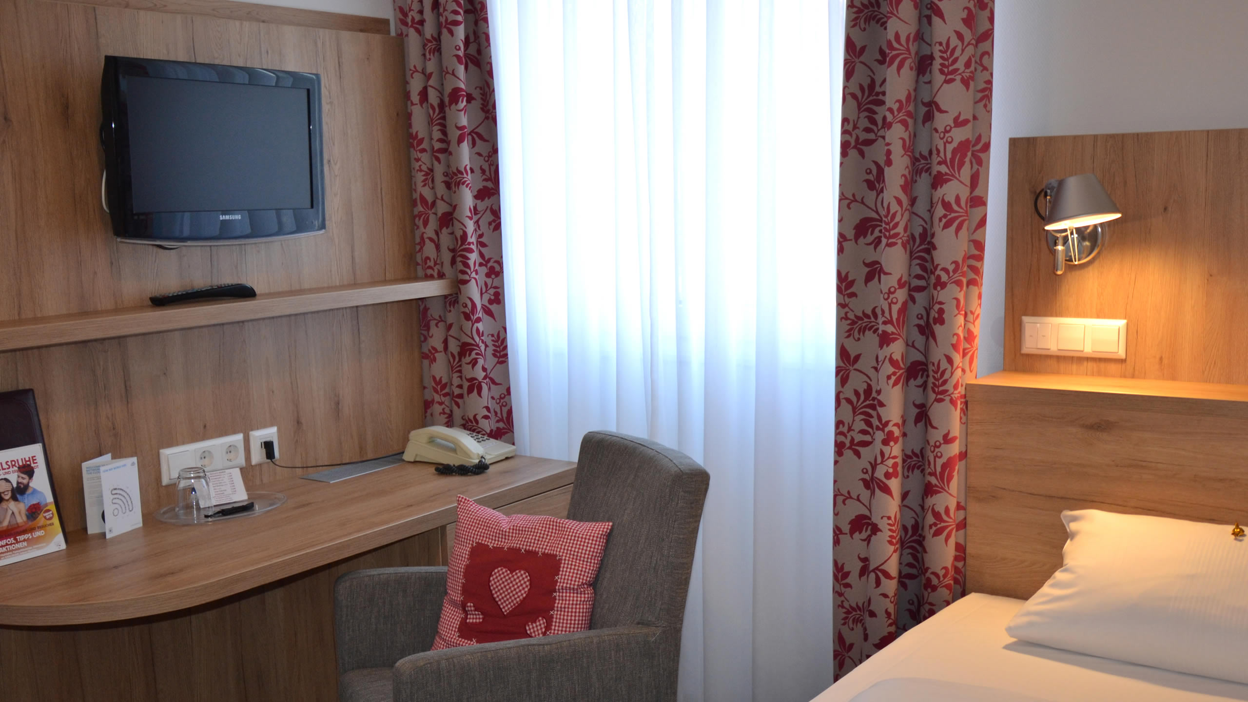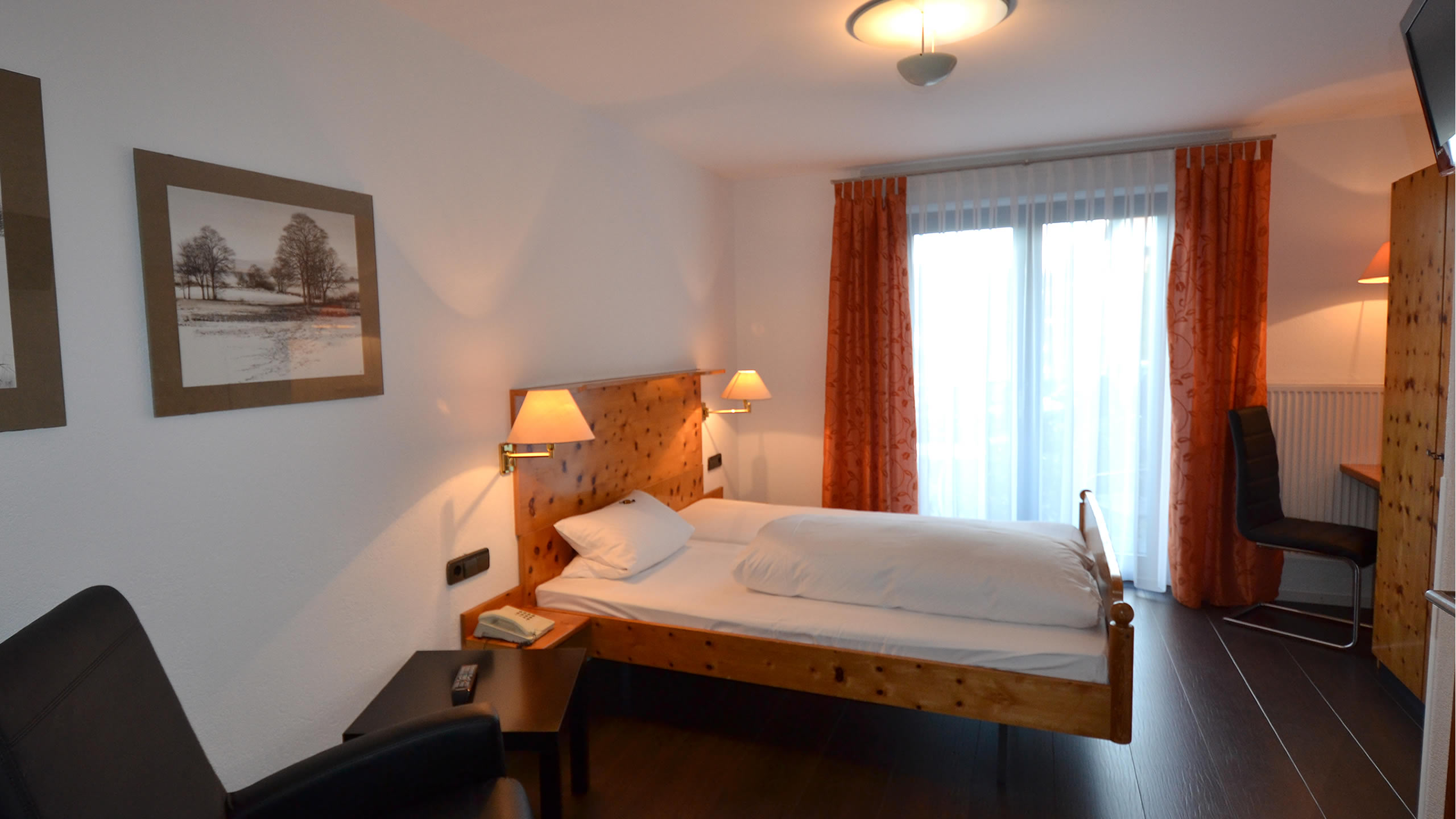 Wie der Name schon sagt, handelt es sich hier um ein kleines Einzelzimmer. Dusche, WC, Kabelfernsehen, Radio, Telefon, wireless-lan, digitale Gästemappe gehören natürlich auch hier zur Ausstattung, eben "Klein und Fein". Gemütliche Atmosphäre auf kleinem Raum.