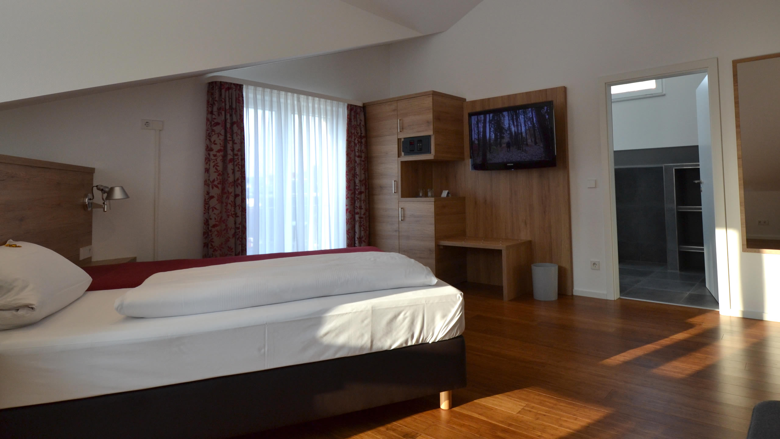 Größter Beliebtheit erfreuen sich unsere Komfortzimmer. Moderne Zimmer, teilweise mit Granitbadezimmer, ausgesuchte Möbelstücke und einige mit herrlichem Ausblick in den Hotelgarten und den angrenzenden Wald erwarten Sie. Alle Zimmer verfügen über einen Flachbild-TV incl.Radio, Minibar und wie bei allen anderen Kategorien natürlich mit kostenfreiem wireless-lan. Einige Zimmer verfügen darüber hinaus über eine kleine Küchenecke so dass man auch den kleinen Hunger zwischendurch problemlos stillen kann. Teilen Sie uns Ihre Wünsche bei Buchung einfach mit. Nach Möglichkeit erfüllen wir Ihnen gerne Ihre Vorlieben.