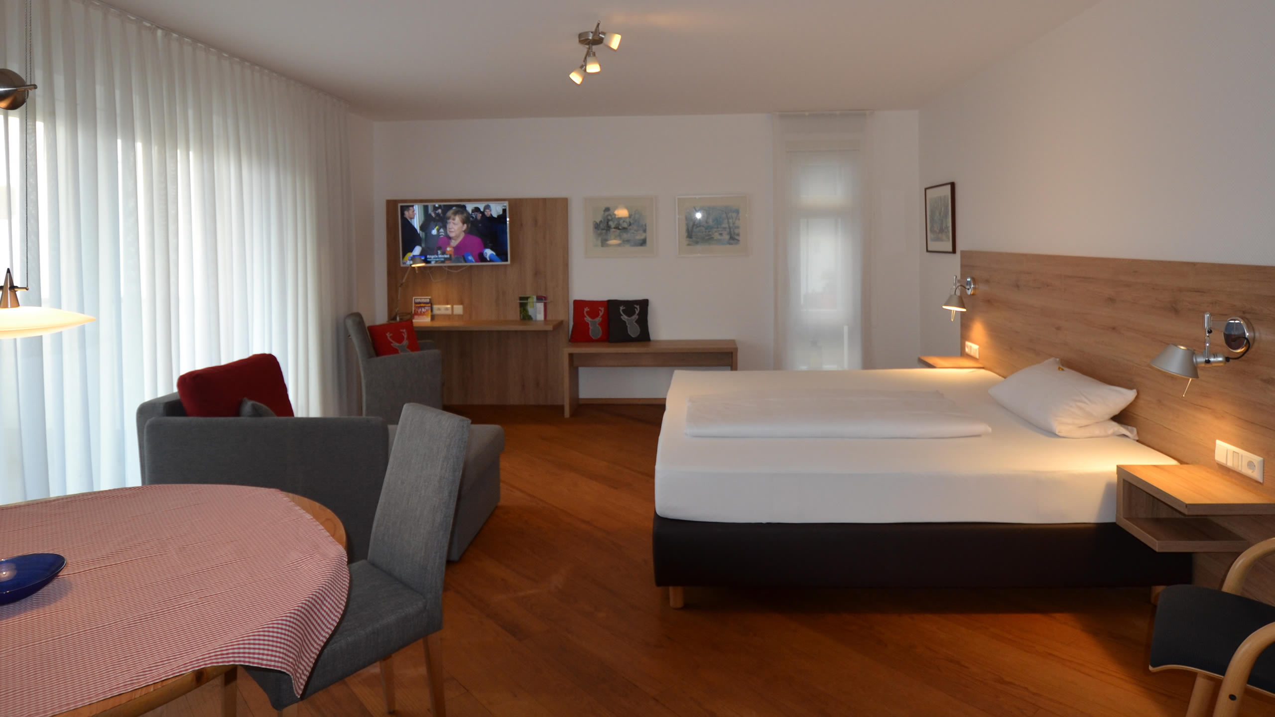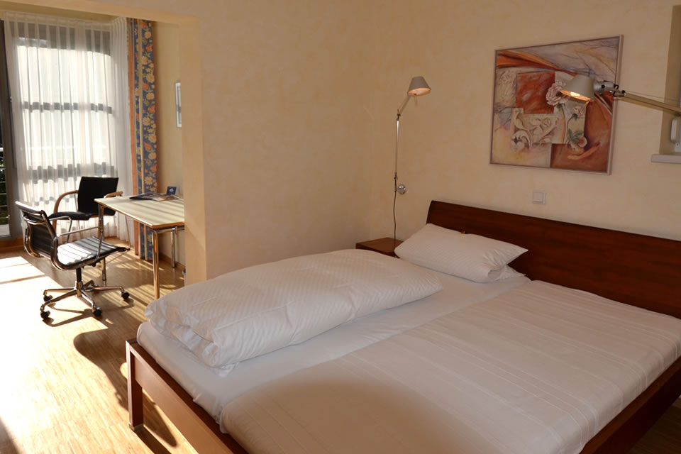 Größter Beliebtheit erfreuen sich unsere Komfortzimmer. Moderne Zimmer, teilweise mit Granitbadezimmer, ausgesuchte Möbelstücke und einige mit herrlichem Ausblick in den Hotelgarten und den angrenzenden Wald erwarten Sie. Alle Zimmer verfügen über einen Flachbild-TV incl.Radio, Minibar und wie bei allen anderen Kategorien natürlich mit kostenfreiem wireless-lan. Einige Zimmer verfügen darüber hinaus über eine kleine Küchenecke so dass man auch den kleinen Hunger zwischendurch problemlos stillen kann. Teilen Sie uns Ihre Wünsche bei Buchung einfach mit. Nach Möglichkeit erfüllen wir Ihnen gerne Ihre Vorlieben.